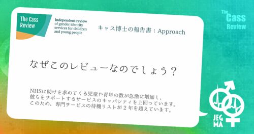 3. なぜこのレビューを実施したのか? 3.1 2020年1月、NHSイングランドは、ジェンダー違和の児童や若者における思春期ブロッカーや男性化・女性化ホルモンの使用に関する公表されたエビデンスのレビューを行い、今後の使用に関する政策的見解を示すために、…